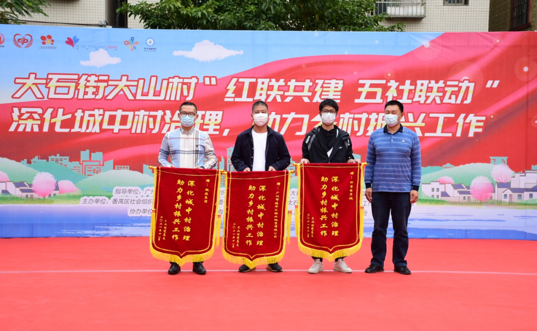 活动由广州市民政局、广州市社会组织管理局、番禺区民政局、大石街道党工委、番禺区社会组织党委指导,番禺区社会组织联合会党支部、大山村党总支、番禺区慈善会党支部、大石街商会党支部、广州市天河区启智社会工作服务中心党支部联合主办。