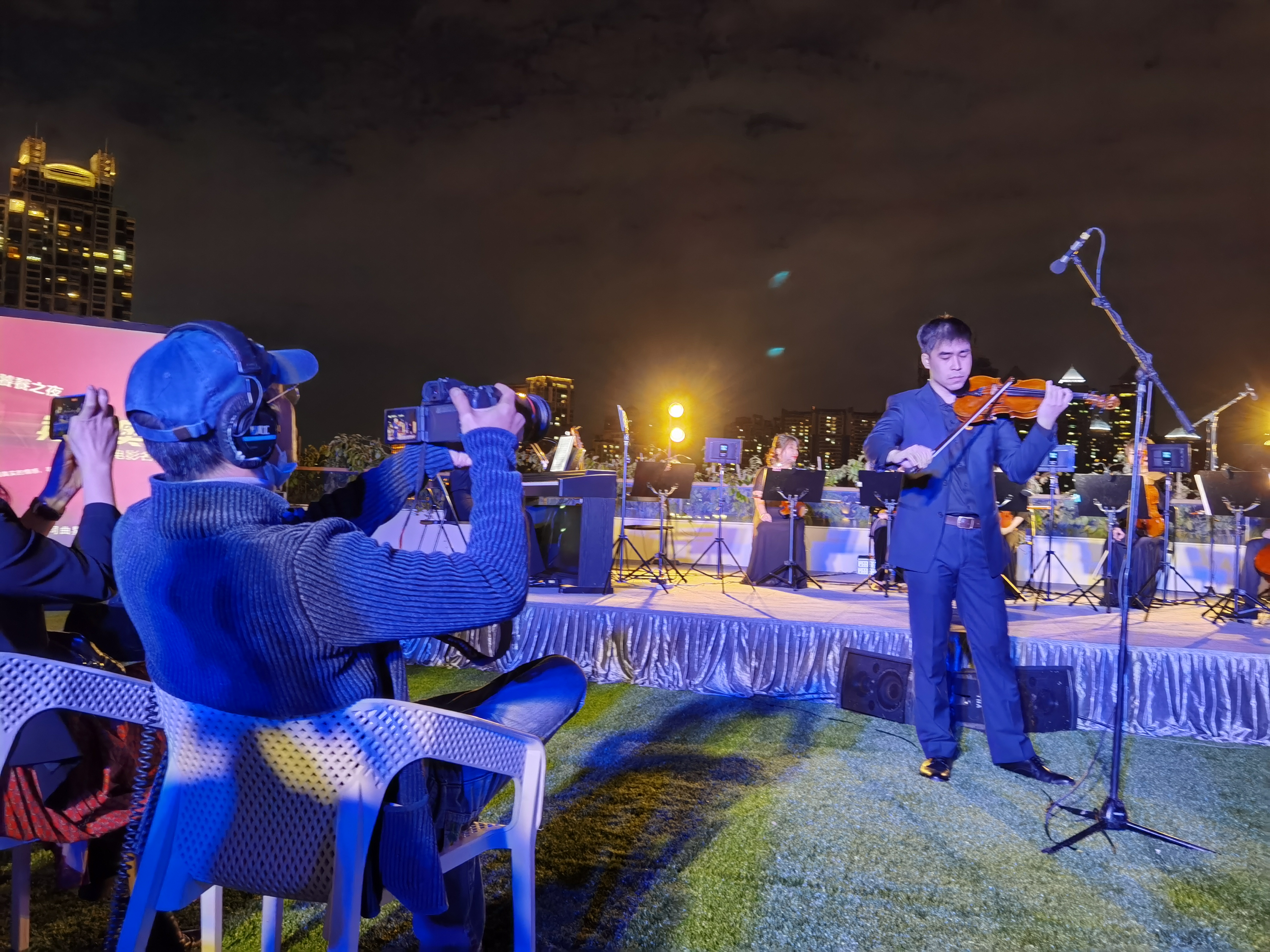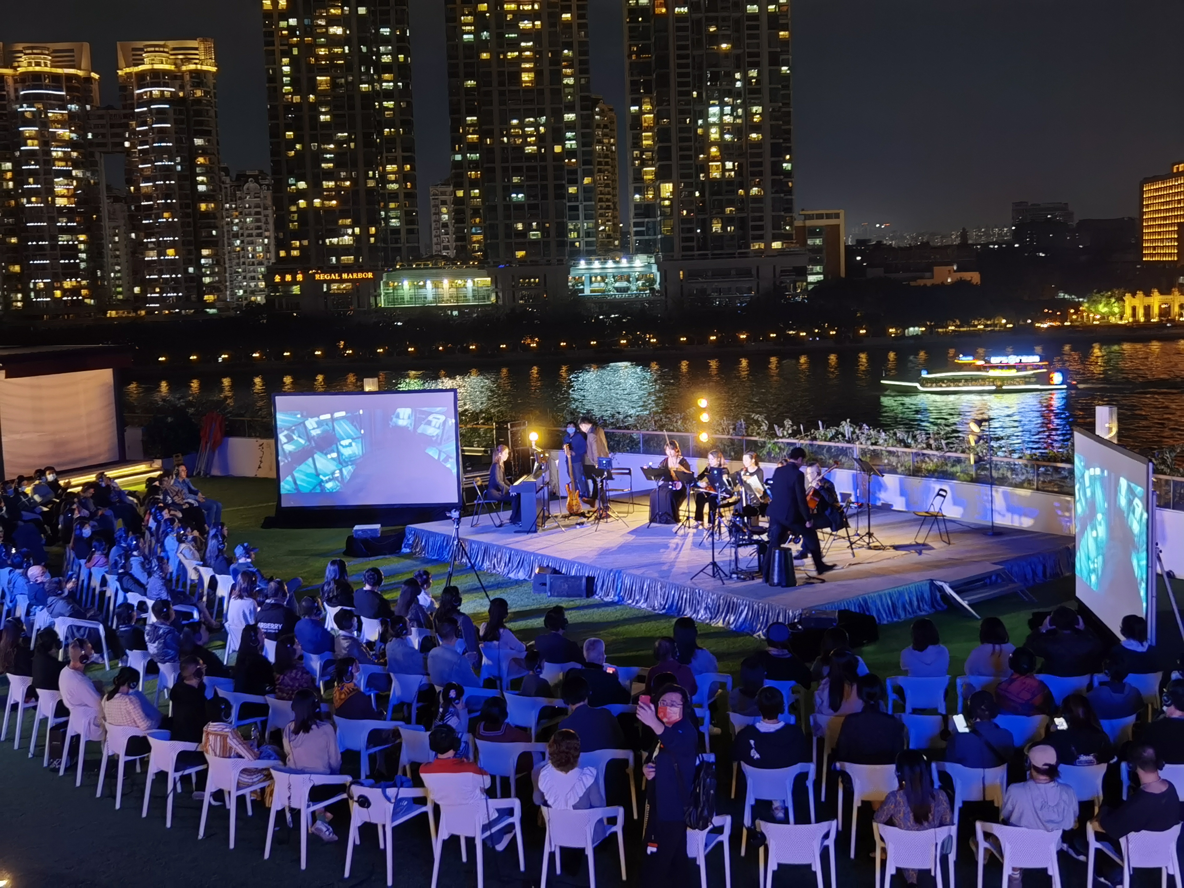 夜晚的文立方秋风习习,珠江、广州塔成为最美的“背景板”。音乐会上,观众们戴上耳机,零距离聆听《碟中谍》《泰坦尼克号》《天堂电影院》等中外经典电影音乐。同曲异工乐团所使用的麦克风为录音室专用的麦克风,音乐会现场就是一个移动的录音棚,带给观众透过全方位、高保真、Hifi发烧级的立体享受。观众李小姐表示,第一次感受这样独特的微距音乐会,在空中花园的美景里,戴着耳机独享犹如身处录音室般的音响效果,“特别有感觉!”