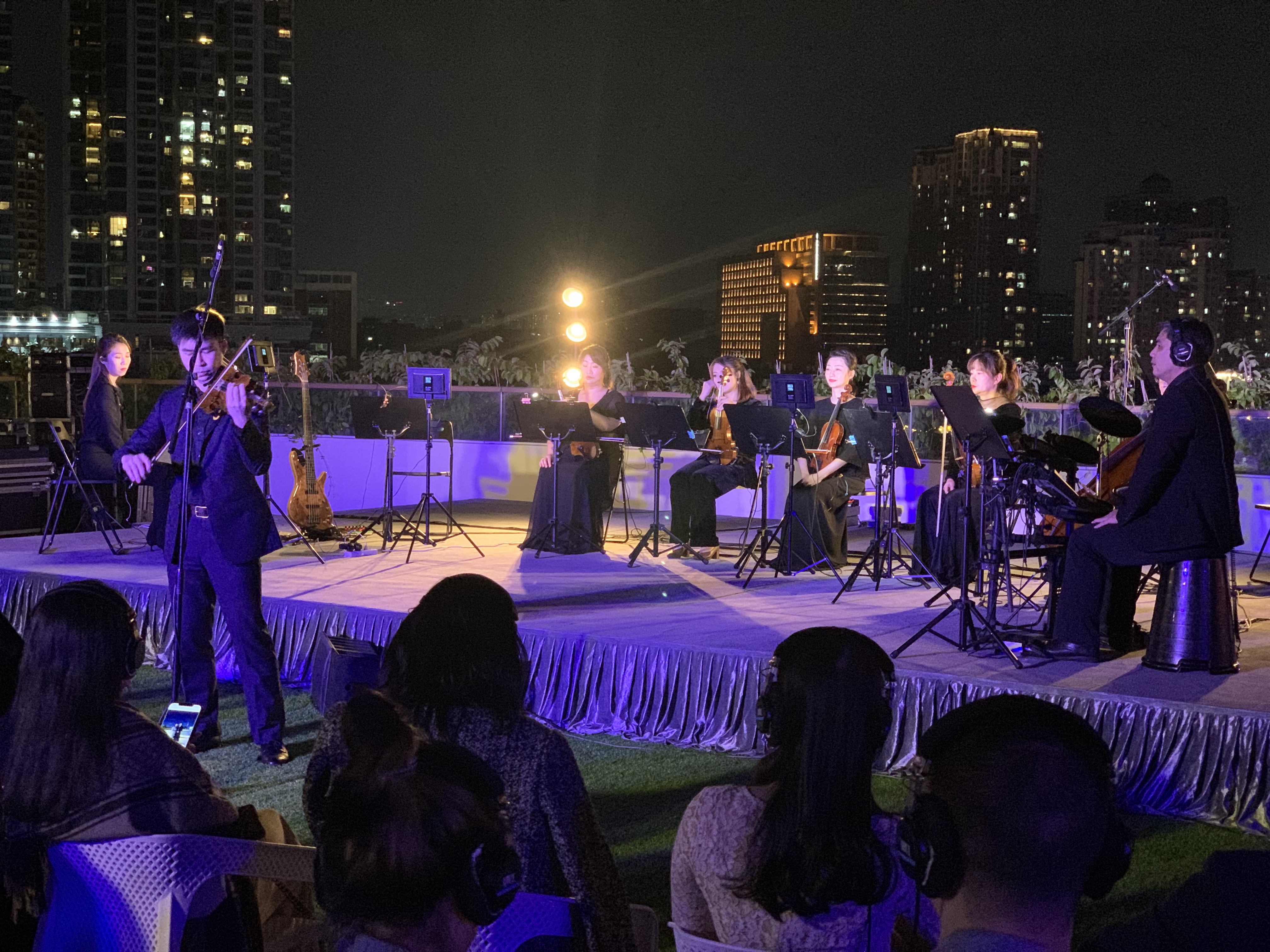 11月14日晚,广州文立方空中花园乐声缭绕。由广州同曲异工乐团演绎的《穿越奥斯卡》电影原声微距音乐会在此举行。多首经典电影音乐悉数登场,特别的是,这是一场“微距音乐会”,现场的每位观众都是头戴耳机欣赏艺术家的演出。