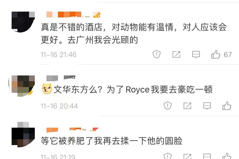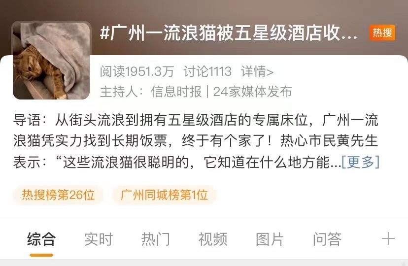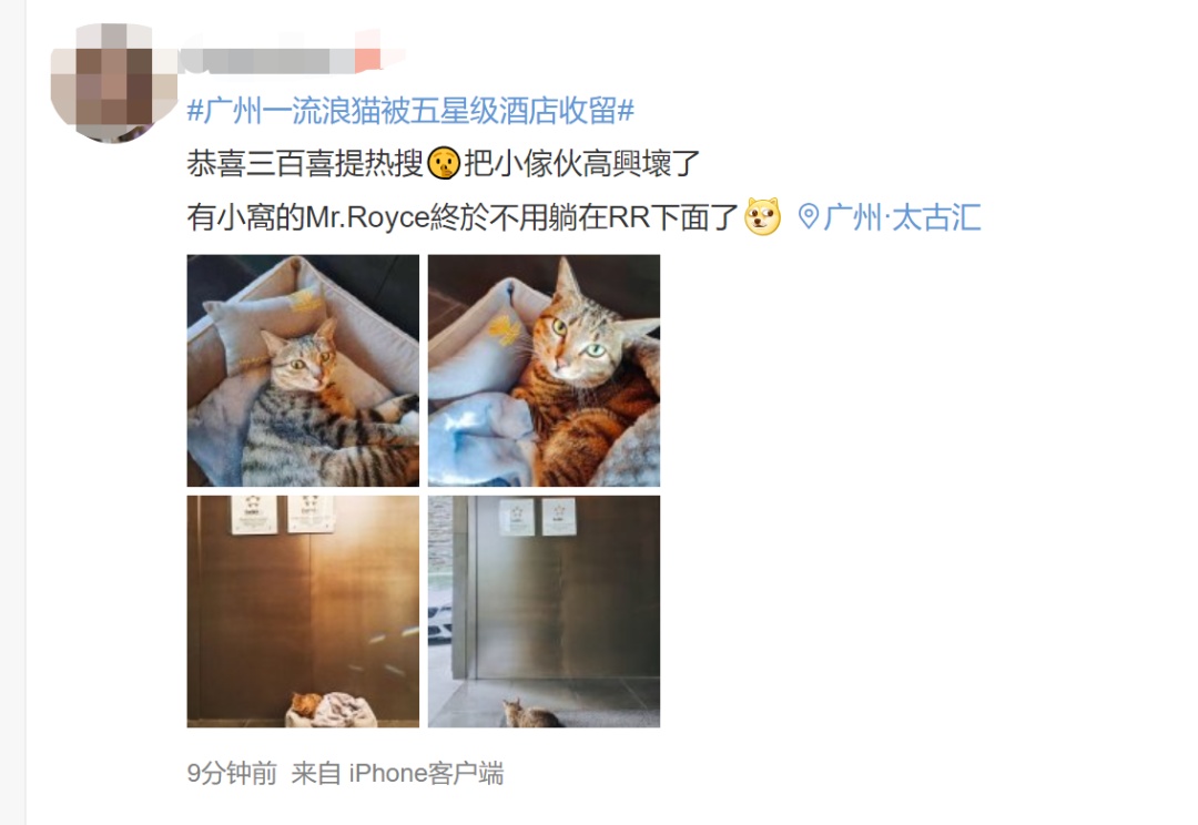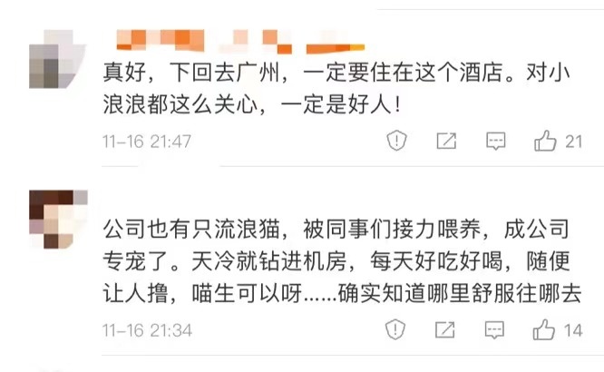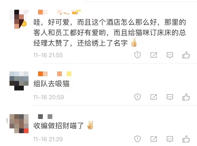 “这些流浪猫很聪明的,它知道在什么地方能活下来,过得比较好,它就不走了。员工餐厅也会拿一些东西给它吃,总经理就帮它订了个床,有它名字的。”