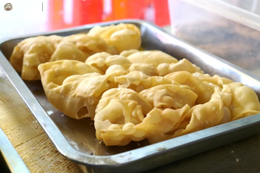 在番禺,爱觅食的人总能挖掘到一些其貌不扬实则内含“宝藏美食”的小店——譬如这家坐落于市新路19号的“秋月饮食店”。走近低矮的砖瓦平房门口,只见蜂窝煤炉上的3口锅里正在加热干蒸、水晶糕、猪红汤、糯米鸡和粽;右边玻璃餐柜里摆放着各式静待客人下单的咸甜小吃。其中,不断新鲜出炉,被堆叠成小山高的炸蛋散,在玻璃柜上尤为显眼。