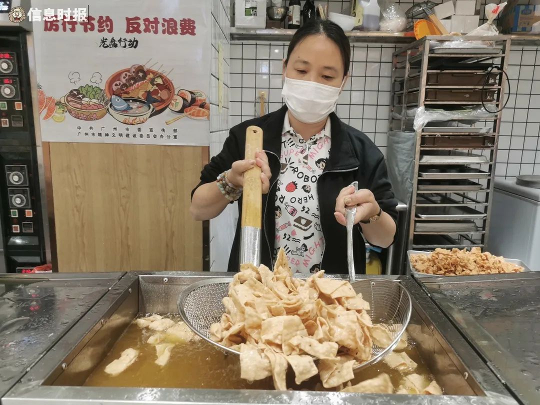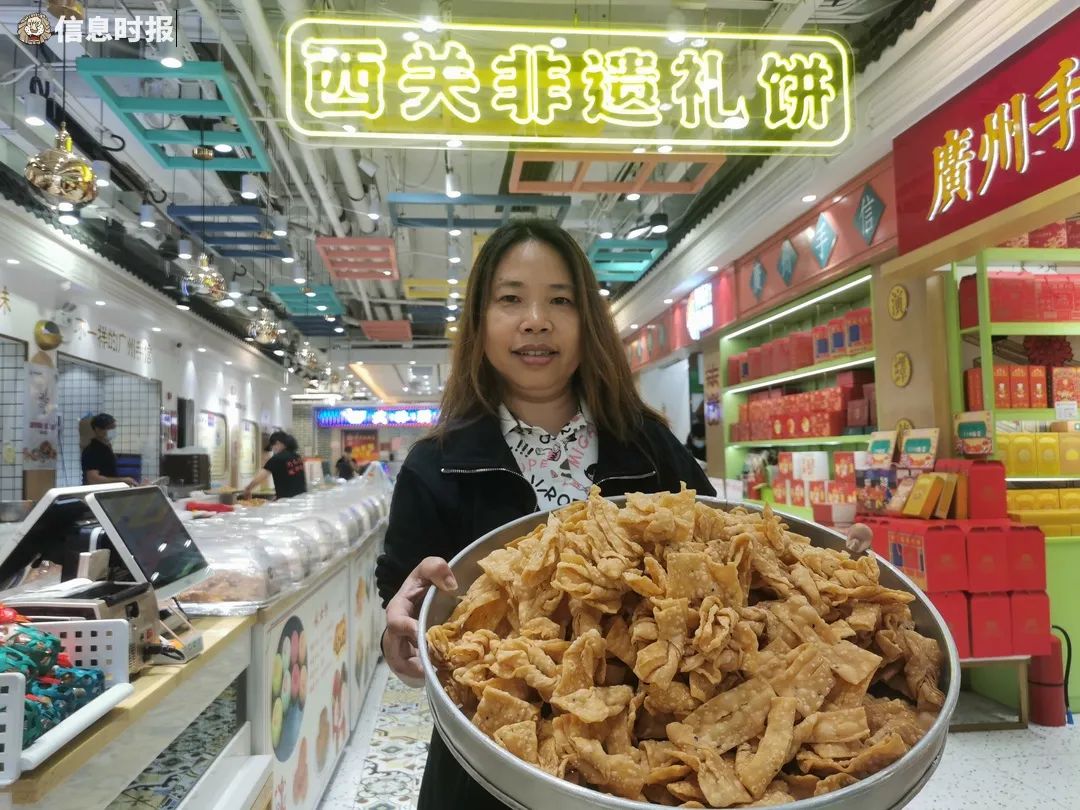 赞记龙凤礼饼店第三代传承人谢颖春沿用奶奶传授的技艺制作咸蛋散。信息时报记者 古晓彤 摄