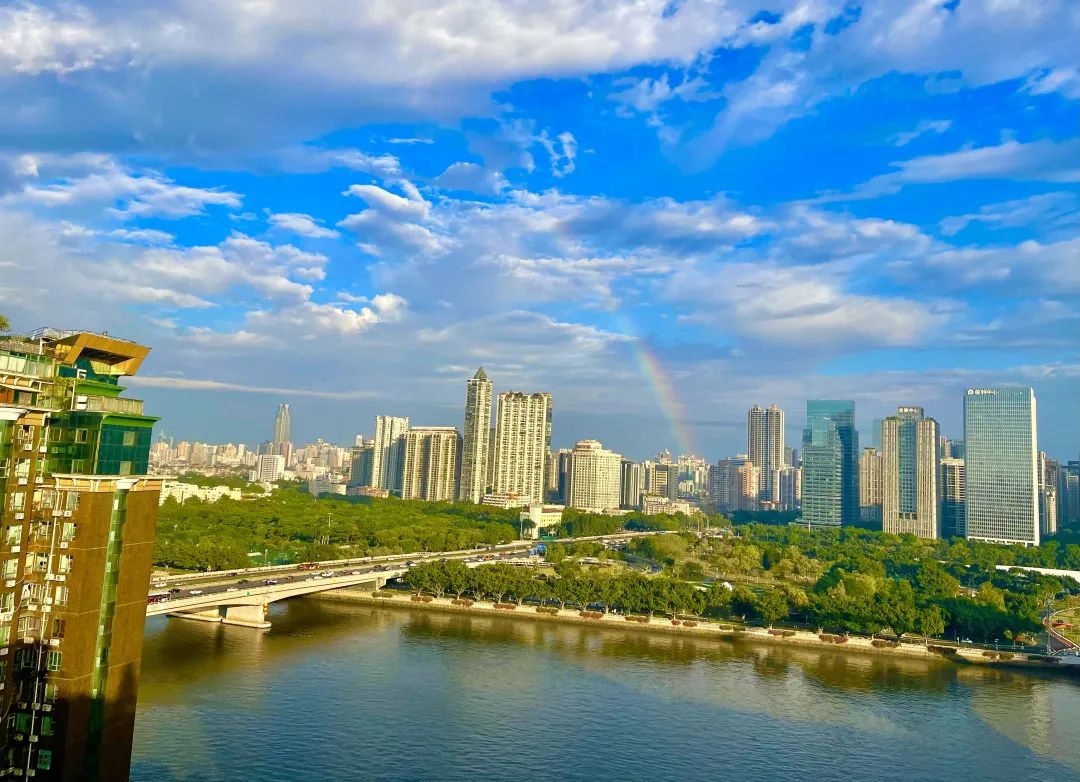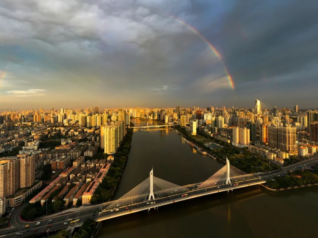 双彩虹悄然挂在珠江上空,