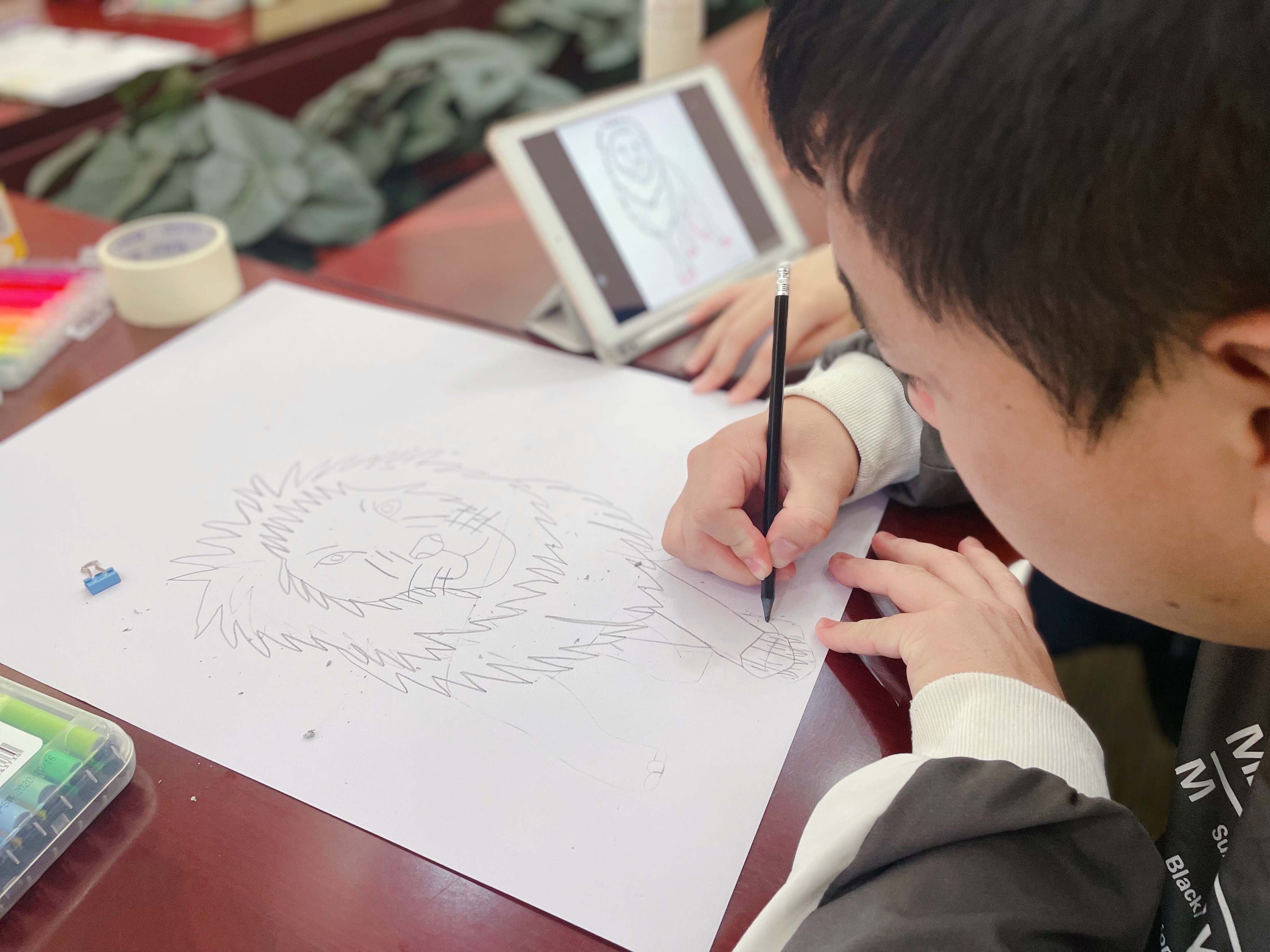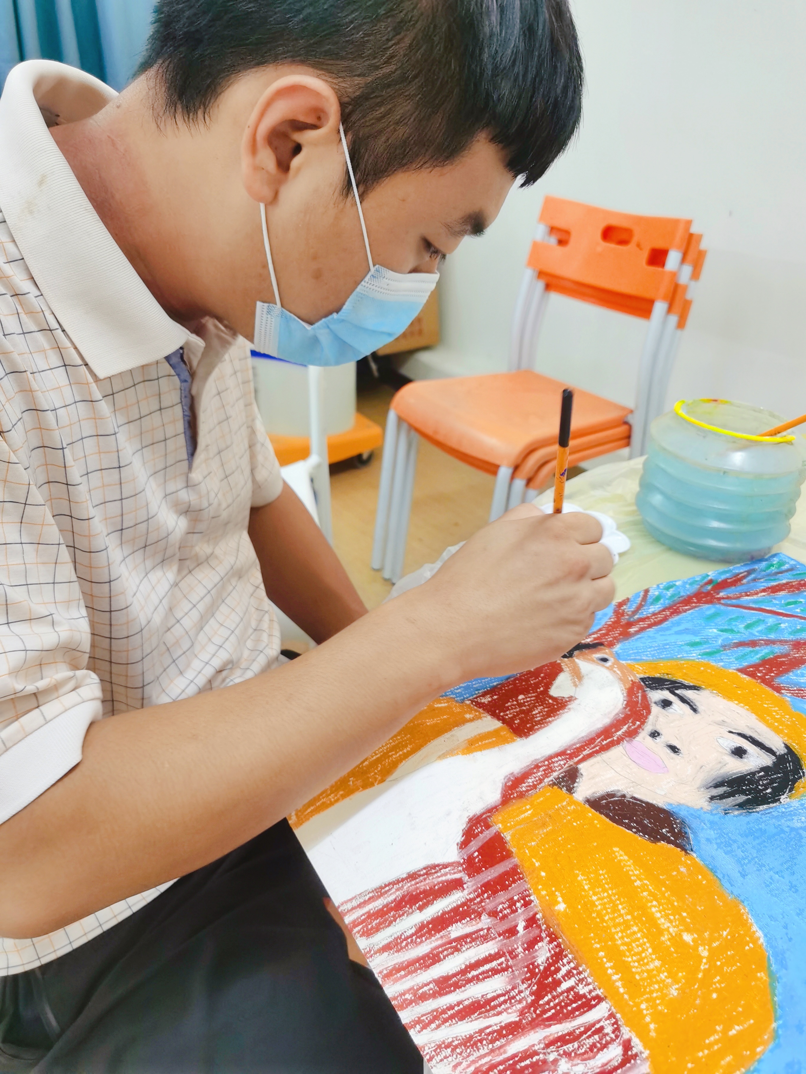 “他的小小进步我们都看在眼里。”罗靖仪说,特需(自闭症、唐氏综合征、脑瘫、智力障碍)人士的特点是存在社交障碍及发育迟缓,通过绘画,能够帮助他们获得社会性发展,其中包括社交能力、观察力、思维力、专注力、表达能力、创造力等,帮助其融入家庭、社区和同伴。
