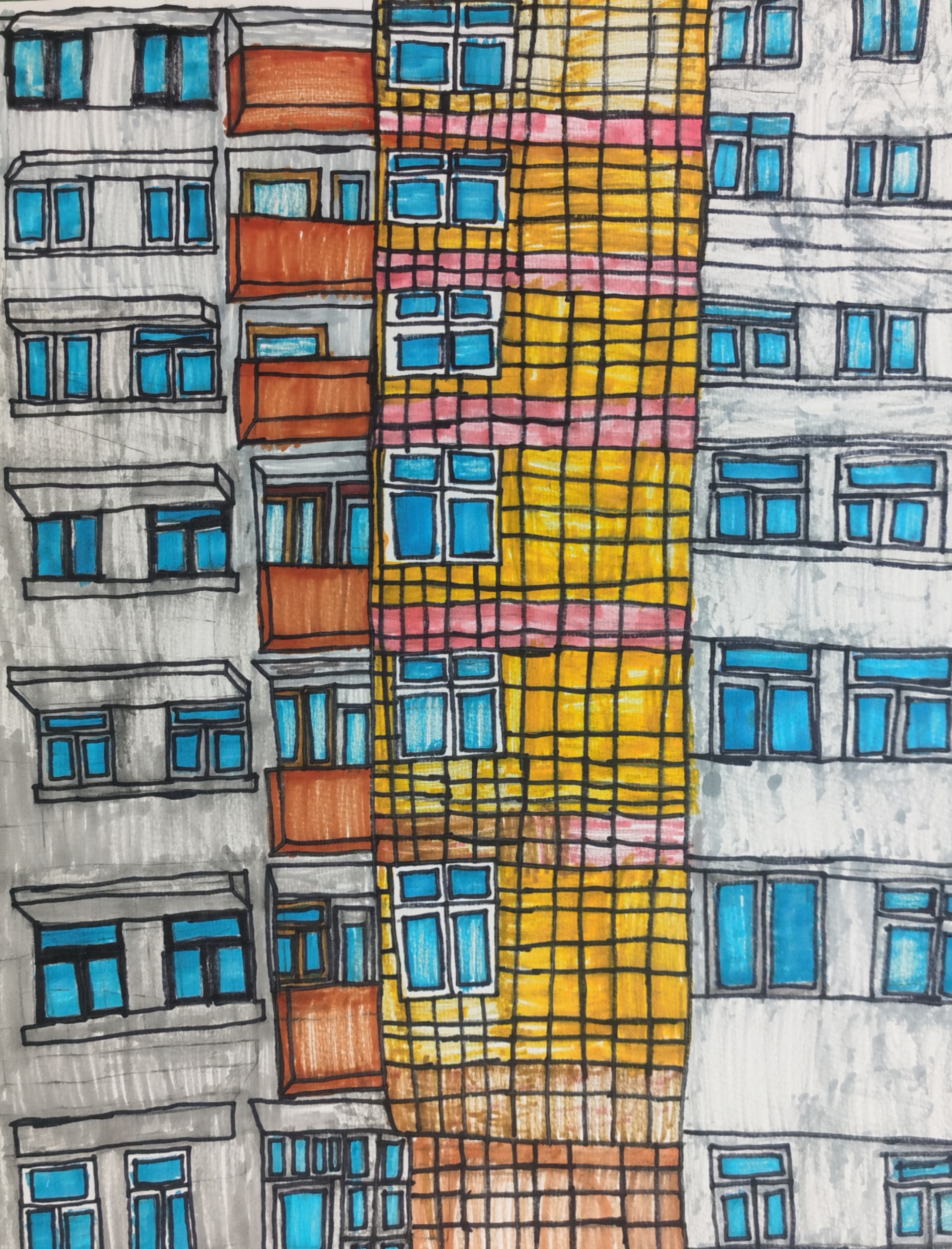 “当时我觉得他的兴趣比较狭隘,在工具的使用上也不敢尝试。” 罗靖仪说,自己想了很多的方法来引导张峻绮尝试其他题材,比如说服他画人物画,让他在画面装饰部分按照自己的喜好添加内容,慢慢地,他逐渐接受老师给的绘画主题,并且开始尝试观察、了解、思考更多主题,画面越来越丰富。