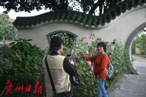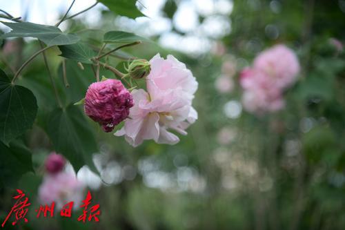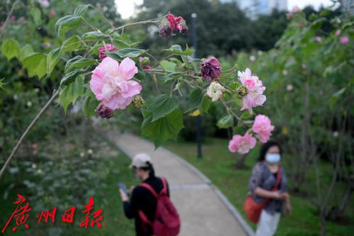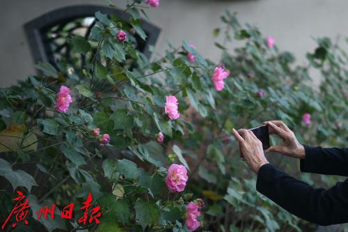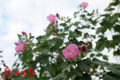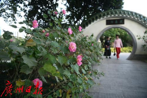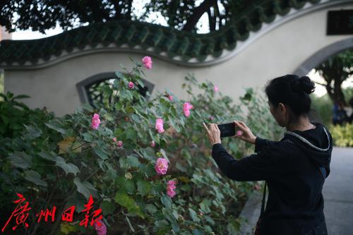在冬日的艳阳下,流花湖公园的芙蓉花欣然绽放了!今年,流花湖公园从“蓉城”引进了锦蕊、百日华彩、醉云等10个新的芙蓉花品种500多株芙蓉花,盛放在湖边、栈道、草地等地,公园各处都被芙蓉所围绕,一片粉色花海绘出11月盛景。穿花丛、寻芳踪,浑然天成的烂漫景致与精致园内建筑相映成趣,吸引了众多游客前来打卡赏花。