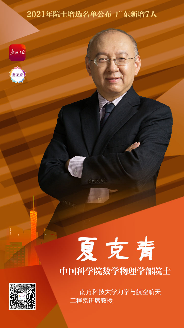 此次广东共新增7名两院院士,其中包括新当选中国科学院院士3人(含外籍院士1人),分别是来自南方科技大学流体力学专业的夏克青、来自华南理工大学高分子化学与物理专业的马於光,以及来自南方科技大学杰曼诺夫数学中心主任的杰曼诺夫;新当选中国工程院院士4人(含外籍院士2人),分别是中国南方电网有限责任公司的饶宏和南方医科大学的高天明,2名外籍院士分别是来自香港中文大学(深圳)的罗智泉和来自阿尔伯塔大学/南方科技大学的徐政和。