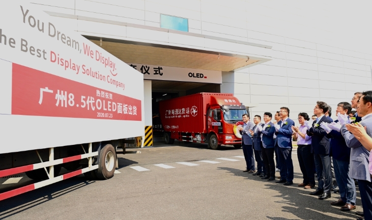 2020年7月23日,乐金显示在位于广州高新区的8.5代线OLED面板工厂举行了量产出货仪式纵观发光材料的发展历程,以 Alq3为代表的荧光分子作为第一代 OLED材料(专利权由柯达公司掌握), 因能量利用效率低(<25%, 受激子统计限制)已逐渐被新材料替代; 第二代 OLED 材料(当前主流材料)是以铱(Ir)配合物为代表的磷光材料(专利权为美国 UDC 公司掌握), 该类材料的能量利用效率可接近100%, 但是仍存在诸多问题。