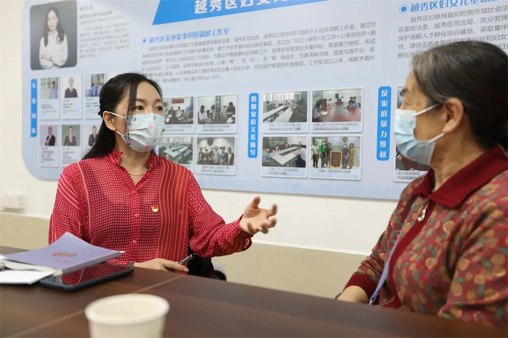 除此之外,越秀区妇联还在孵化培训基地设置了“舒心驿站”心理咨询点,为前来求助的妇女儿童和家庭提供家庭关系辅导和心理咨询等服务,让妇女群众享受婚姻家庭纠纷调解“一站式”服务。