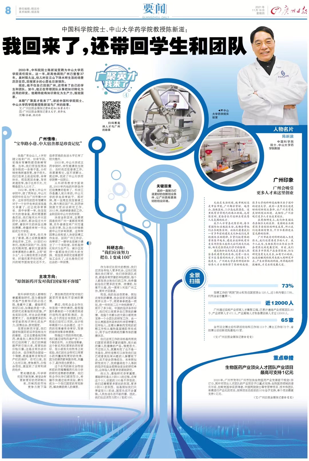 本期“广聚英才我来了”,讲述中国科学院院士、中山大学药学院教授陈新滋与广州的故事。