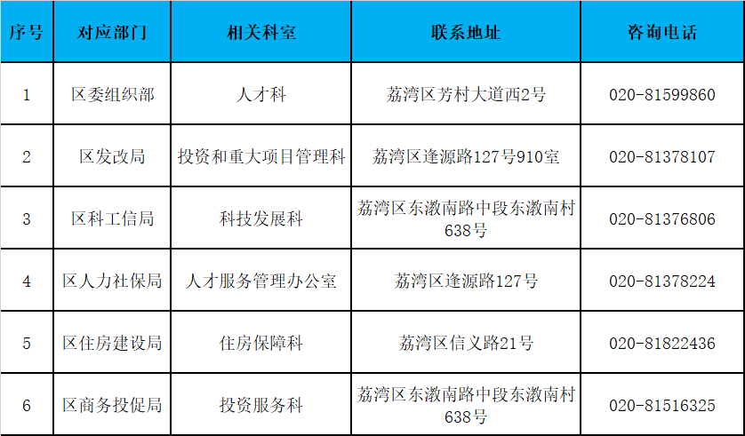 具体流程、资料清单以及各主管部门地址详见《广州市荔湾区2021年人才公寓集中公开分配公告》。