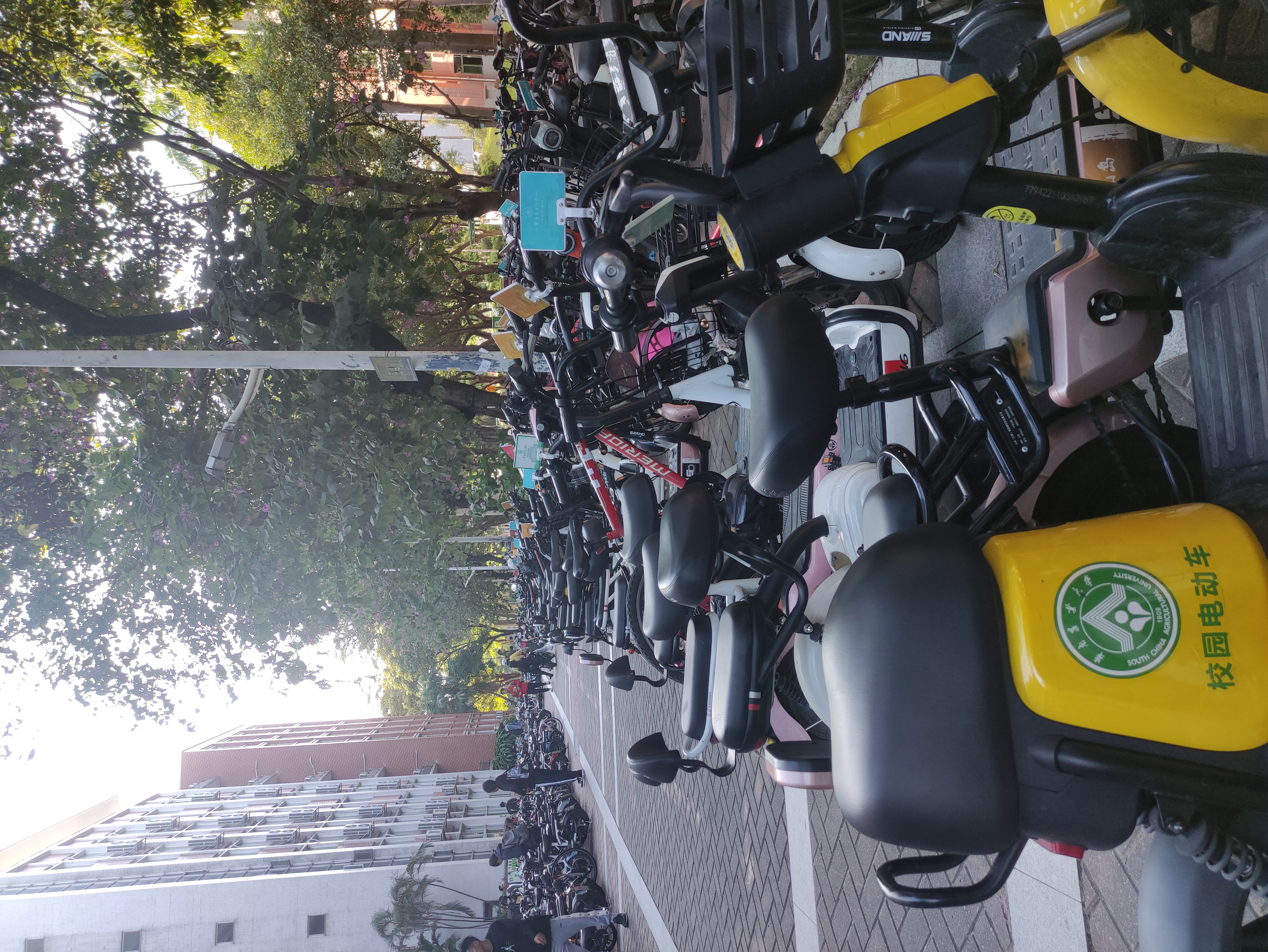 据了解,目前华农校园内共投放了1600辆共享电动车,并在每栋宿舍楼下都引进了电动车充电桩和充电柜;相比之下,华南理工大学五山校区则早于2020年就在校园内投放了400辆“哈啰”共享电动车,与此同时还配备了两百多个充电桩。
