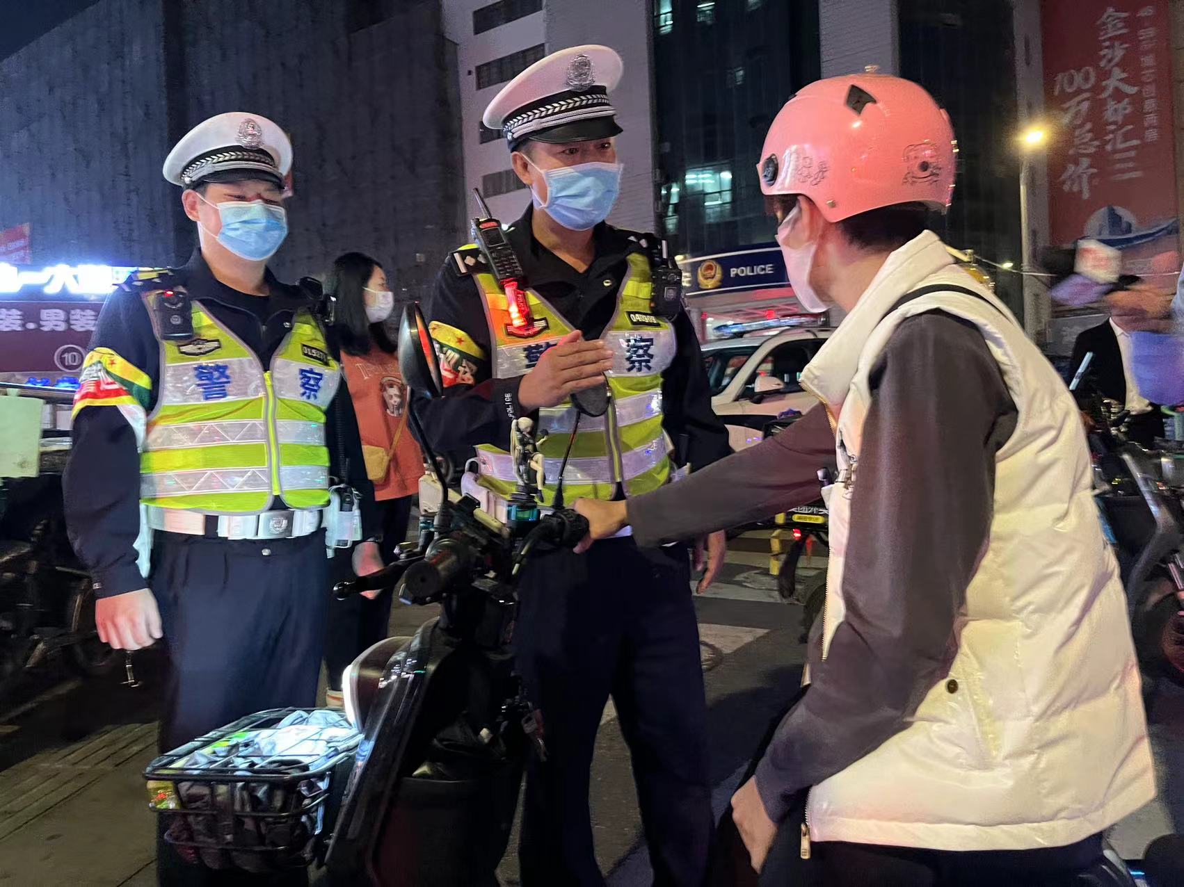 当天晚上7时许,一名骑着电动自行车的女子在站前路非机动车道内被执勤民警拦了下来。有没有头盔?是否知道头盔的重要性?知不知道电动自行车限载一名12岁以下儿童?面对民警的三连问,该名女子连连点头,赶紧取出头盔戴上,并解释说“赶去另一栋大厦办业务,就几百米的路途,图方便就没戴(头盔)了,路上遇到同事就顺路捎上了。”