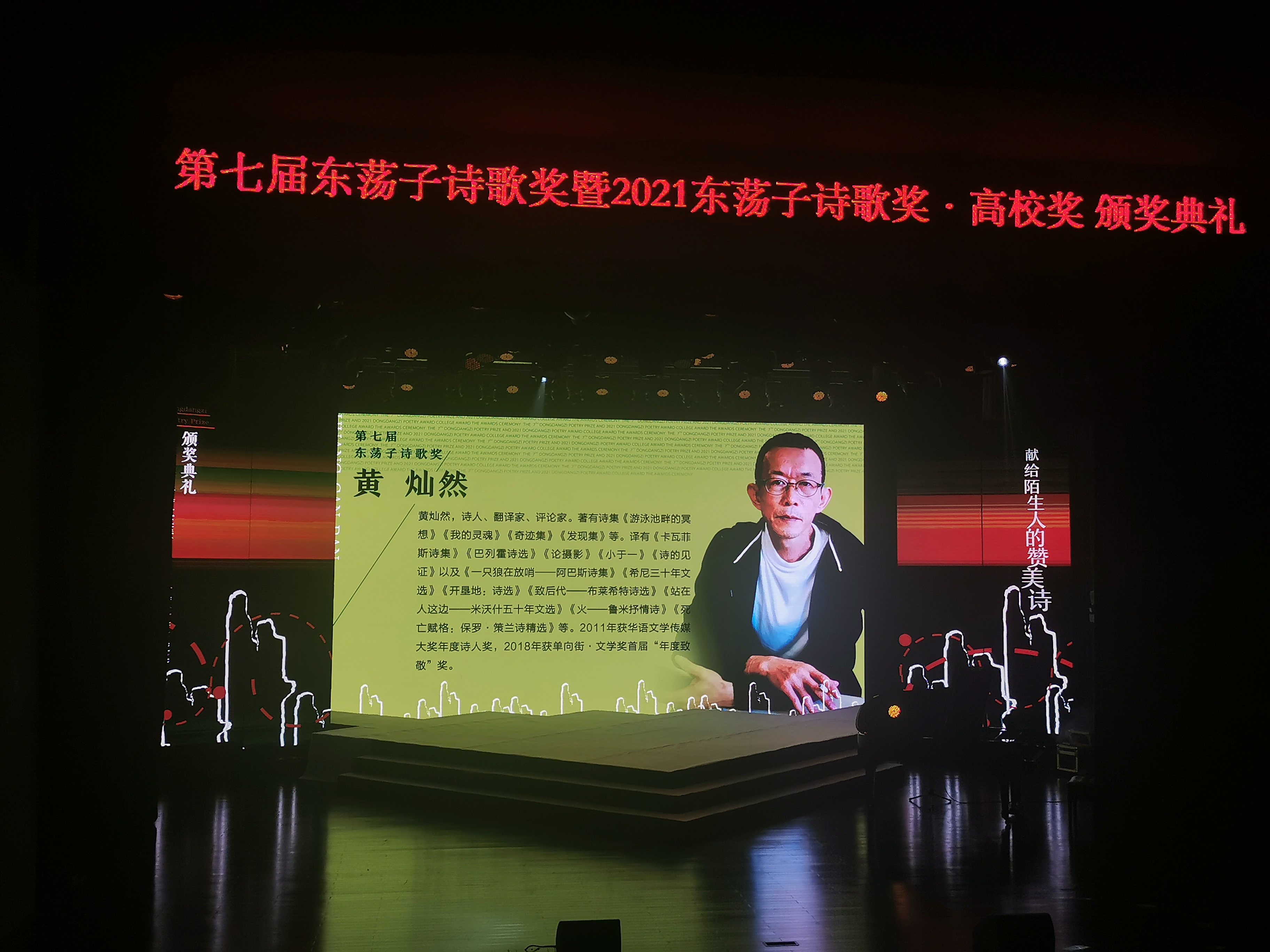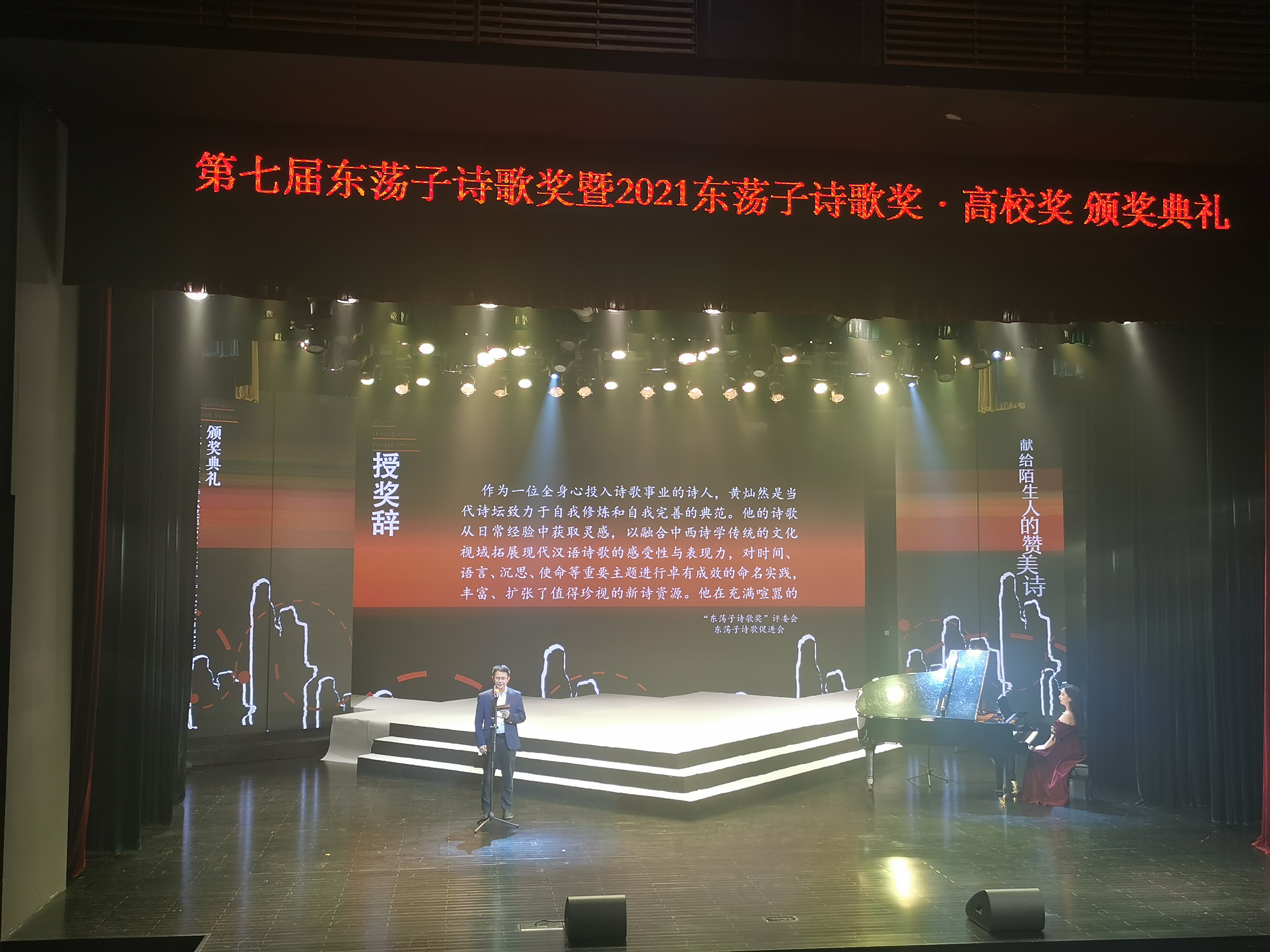 11月19晚,由东荡子诗歌促进会主办的第七届东荡子诗歌奖暨2021东荡子诗歌奖高校奖颁奖典礼,在佛山市顺德区北滘文化中心音乐厅举办。