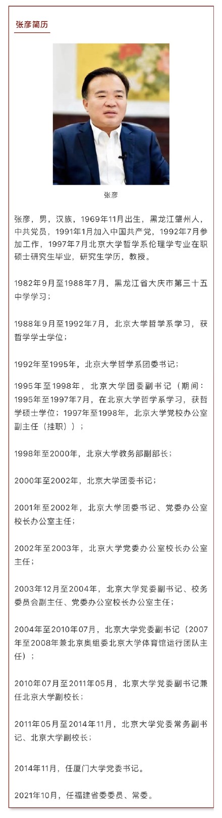 原厦门大学党委书记张彦任福建省委宣传部部长