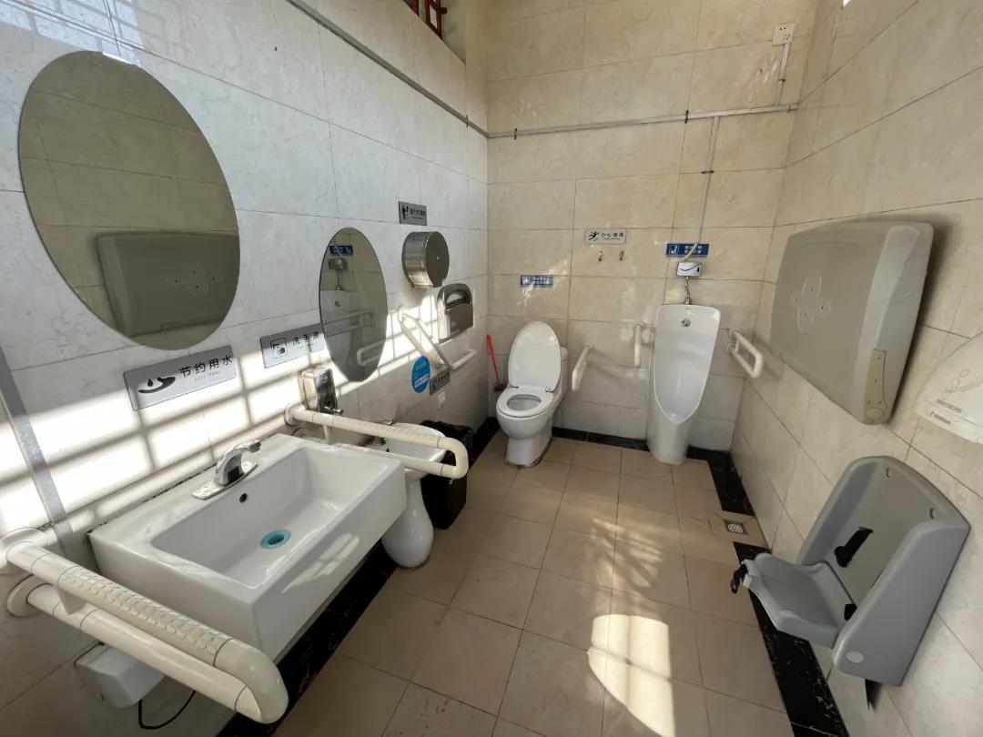 记者了解到,该公厕属于一类厕所。建筑占地面积约167平方米,景观配套面积约398.5平方米,目前女厕厕位20个,男厕厕位约10个,厕所内配有专人定岗负责保洁。