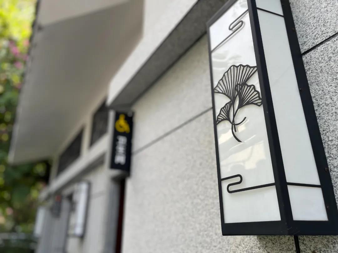 在越秀公园花卉馆旁,坐落着一处小院落式的公厕,两棵参天大树偎倚一旁。公厕入口处以木棉为元素的“南越宫灯”设计,岭南窗花搭配青砖绿瓦,彰显着广府文化韵味。