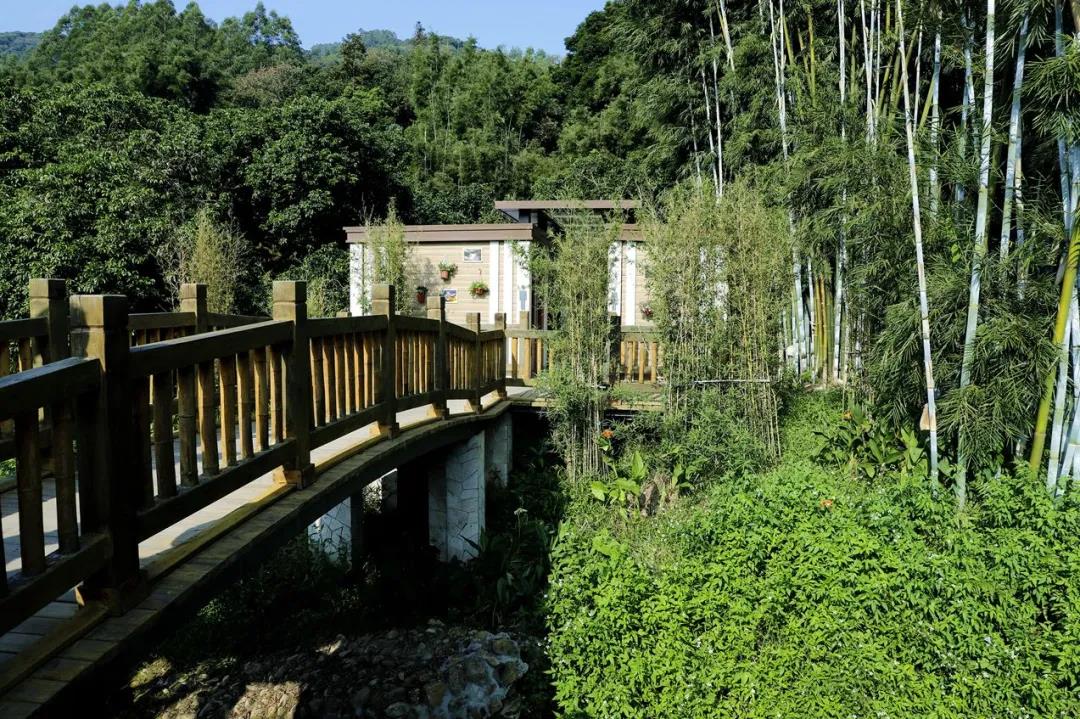 门前用佛肚竹、南天竹、琴叶珊瑚、肾蕨、竹芋等多种彩色植物,搭配形态各异的片石、太湖石,以及圆形的格窗,打造一个舒适惬意的园林小景。远远望去,厕所仿佛融入大自然中,既自然又美观。