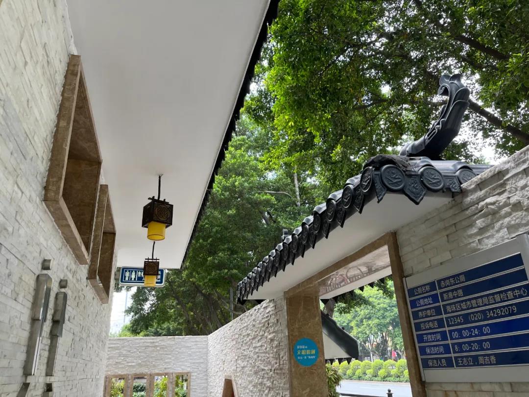 位于海珠区石基路528-5号的黄埔古港公厕,在2019年开始进行了升级改造。记者在现场看到,整座公厕采用中式岭南园林院落布局,粉墙黛瓦,入口处采用岭南瓦墙屏风做装饰,整体风格素雅明亮,极具岭南文化韵味。