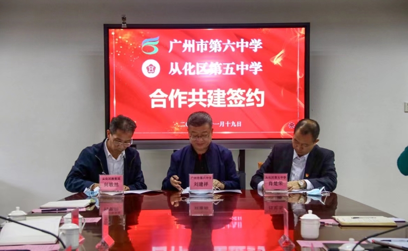 11月19日,广州市第六中学与从化区第五中学合作共建签约仪式在从化区第五中学举行,这是继广州六中从化校区落户从化温泉镇后,广州市第六中学再次向从化输送市属优质教育资源。