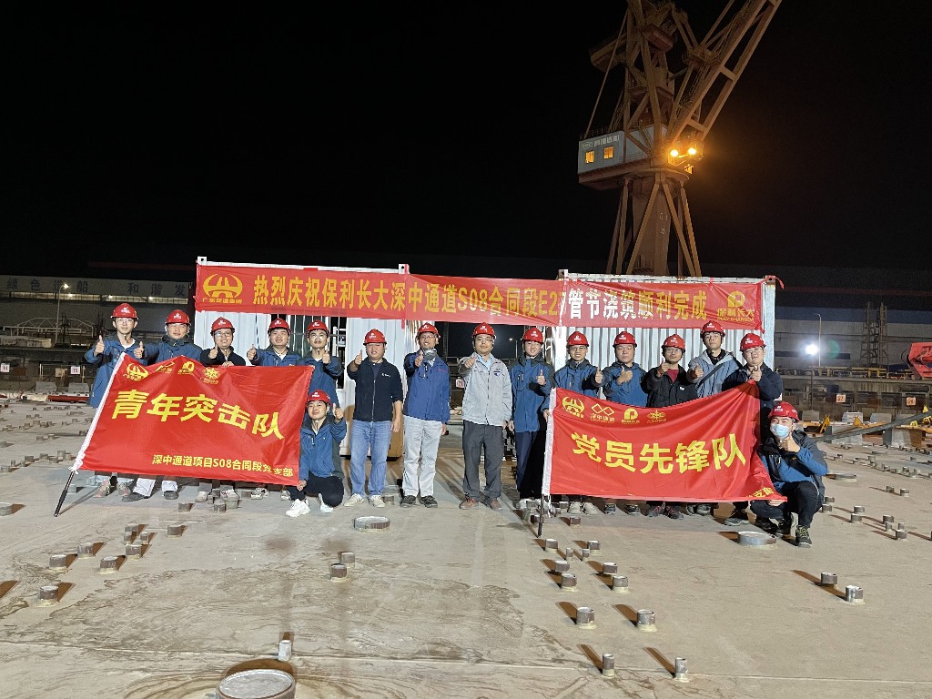 E27管节预制仅用29天完成,刷新一个标准管节预制任务纪录,保证施工计划进度,使合同段全年的生产任务可提前在11月底之前完成。为确保工期,保利长大S08合同段对E27管节启动24小时连续浇筑作业施工。