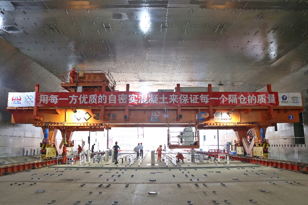 E27管节是深中通道沉管隧道浇筑方量最大的管节,深中通道S08合同段24小时连续浇筑作业施工,创造29天完成预制的新速度,比合同段其它管节预制平均用时缩短15天。