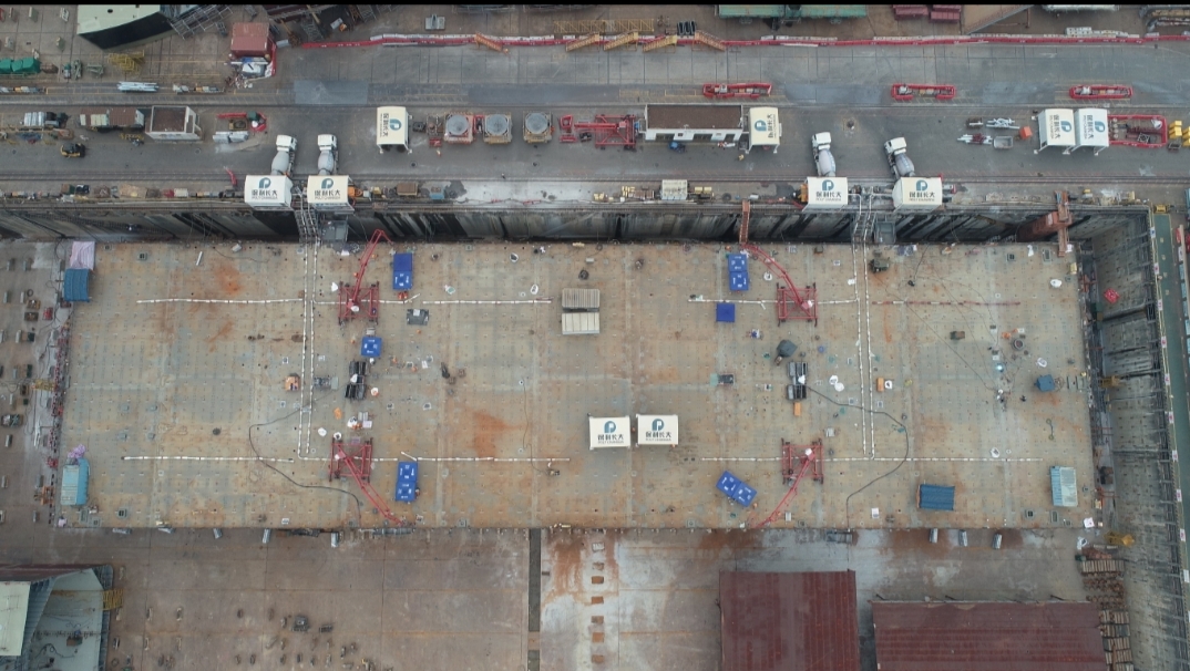 当天凌晨,深中通道E27管节预制现场灯火通明,机械轰鸣。随着最后一方灌浆料浇筑满E27管节端钢壳,保利长大深中通道S08合同段顺利完成首节标准管节E27管节浇筑工作。