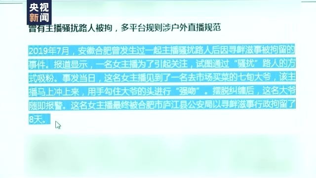 在各平台对户外直播行为的管理规定中,明文规定了严禁主播在直播过程中对路人进行言语、肢体骚扰等行为。然而部分主播却无视规定。