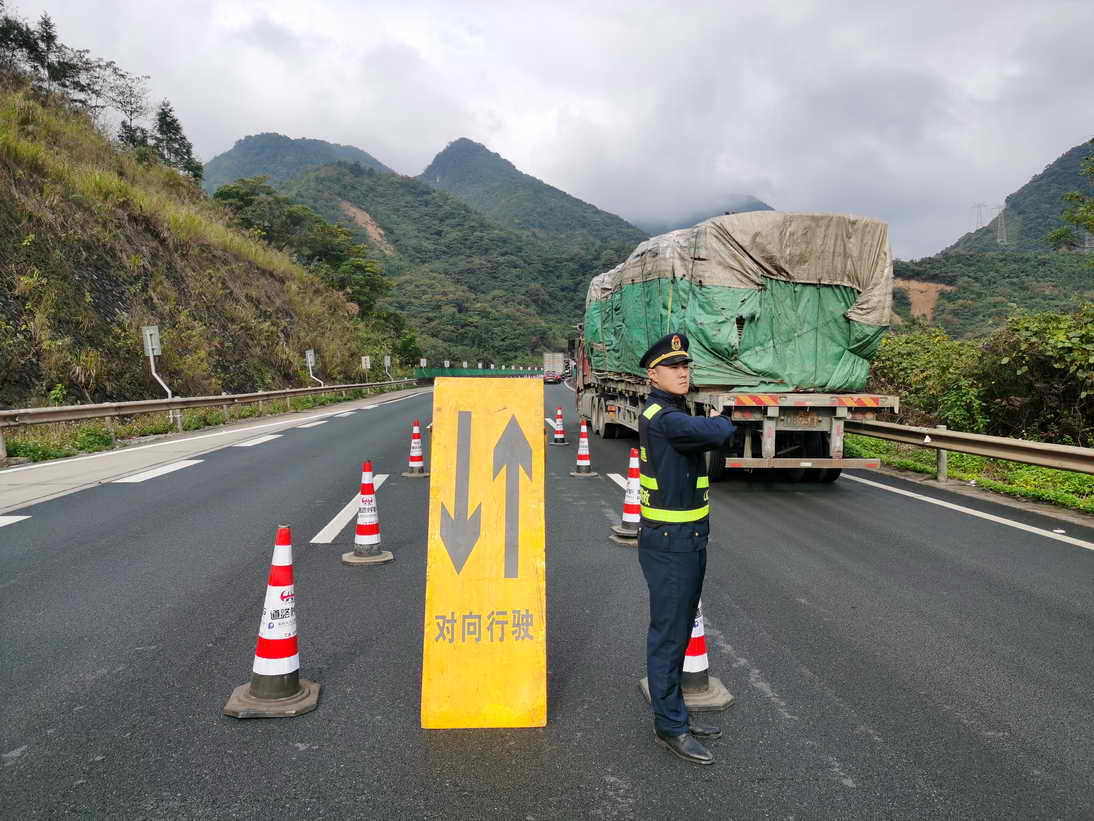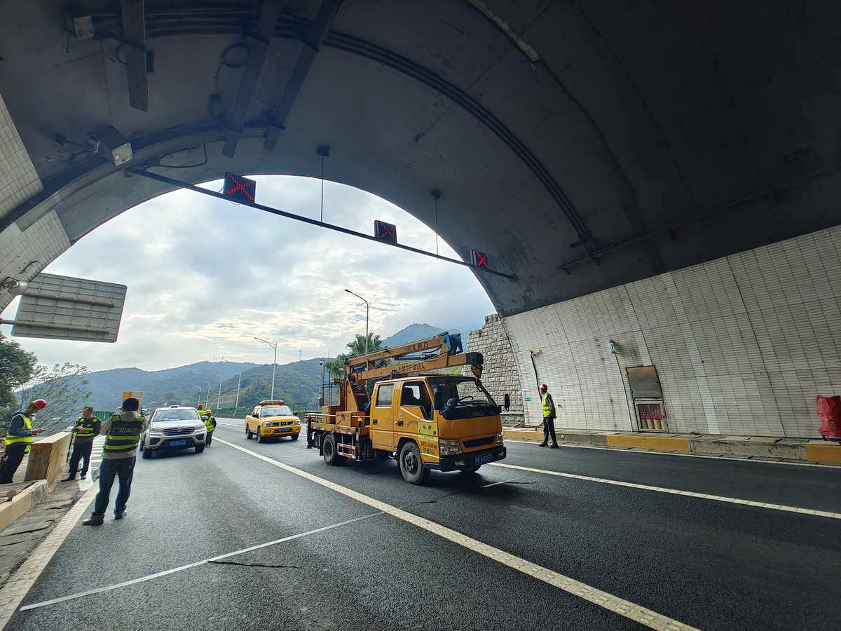 11月18日,路网监测组开始进行路测工作,为配合外业检测工作安全顺利开展,广韶高速于8:30至14:30对北行靠椅山隧道实施全封闭,北行车辆借道南行靠椅山隧道行驶。路政大队兵分几路,有序前往事先设立的6个执勤点待命,各路政中队职责分明,分别在各自的执勤点开展指挥疏导车辆、处置故障车、关注南行和北行车尾情况、利用无人机航拍等工作,做到了信息互通、紧密合作。