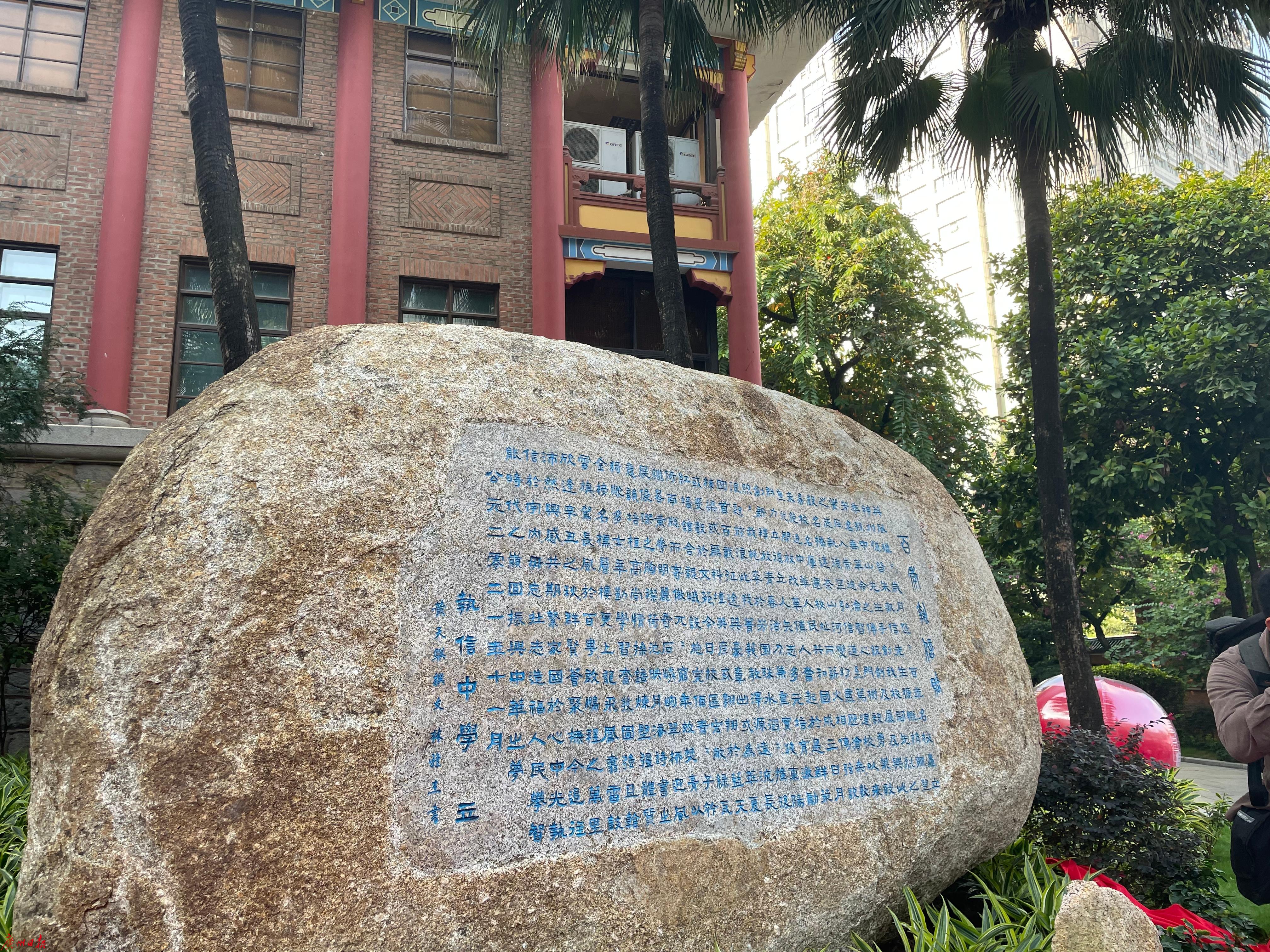石刻《百年执信赋》树立在校园。