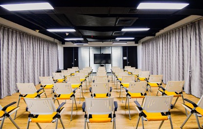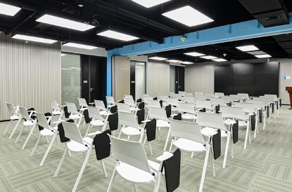 多功能会议厅设备功能齐全,最多可容纳100人,更可拉上隔音挡板把整个会议厅分隔成两个小会议室,举行会议、文化沙龙、创业项目宣讲、就业技能培训、法规政策讲座等丰富活动形式均可满足。