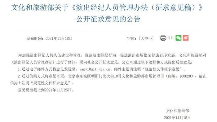 近日,文旅部在《演出经纪人员管理办法(征求意见稿)》里提到,演出经纪人员不得为演员假唱、假演奏提供条件,违反者由县级以上文化和旅游行政部门责令改正;情节严重的,由省级文化和旅游行政部门报文化和旅游部撤销其演出经纪人员资格证。造成损失的,依法承担赔偿责任;构成犯罪的,依法追究刑事责任。