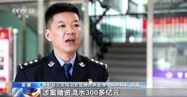 青阳县公安局治安管理大队管理中队中队长 吴厦:目前该案共抓获犯罪嫌疑人78人,查扣涉案资金2000余万元,冻结涉案资金1500余万元,查封房产6套,查处省级运营公司6家,查实市县级代理、擂主、推广员1200余名,参赌人员近百万人,涉案流水资金300亿元。