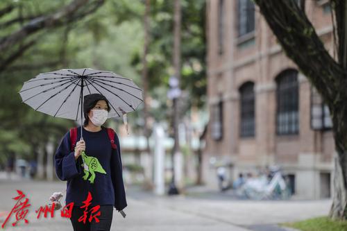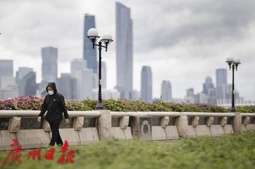 由于天色阴沉,部分时间还飘着小雨,周一白天广州体感阴冷。前一天,不少小伙伴还能穿着夏装出街,周一就裹上了厚外套。