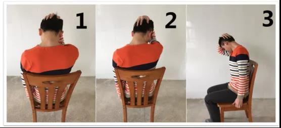 端坐,背部挺直,颈肩放松,慢慢抬头至最大角度,维持6秒,复原。