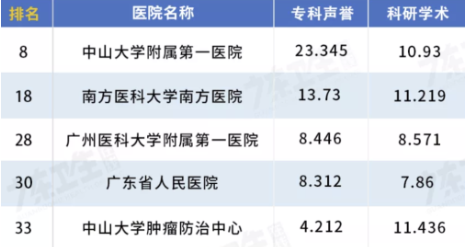 广东省入选前50名的医院