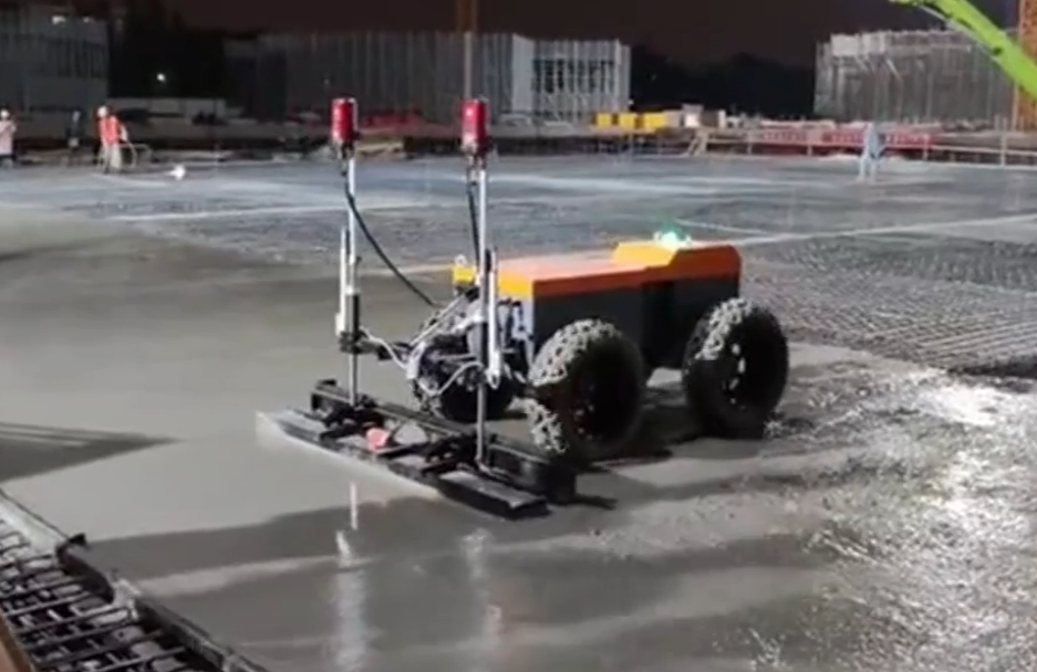 该套整平机器人具有独特的双自由度自适应系统,能够保证机器人稳定地在钢筋混凝土上施工作业,基于自主开发的GNSS导航系统,能够自动设定整平规划路径,实现混凝土地面的全自动无人化整平施工其中,激光整平机器人拥有高精度激光标高控制系统,施工时操作人员无需进入混凝土浇筑区域,只要通过遥控或者提前进行AI设定,机器人便可自动进行高精度找平施工,其施工的精度从传统人工的10毫米提升到4毫米以内。
