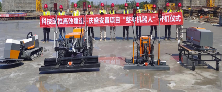 为提升庆盛安置区项目技术管理水平,打造精品工程科技理念,进一步提高科技建造和精益建造水平,展现品质铁建精神内涵,庆盛安置区项目按照南沙公司高效建造、实行小型机械化施工要求,购置了一套混凝土整平机器人。