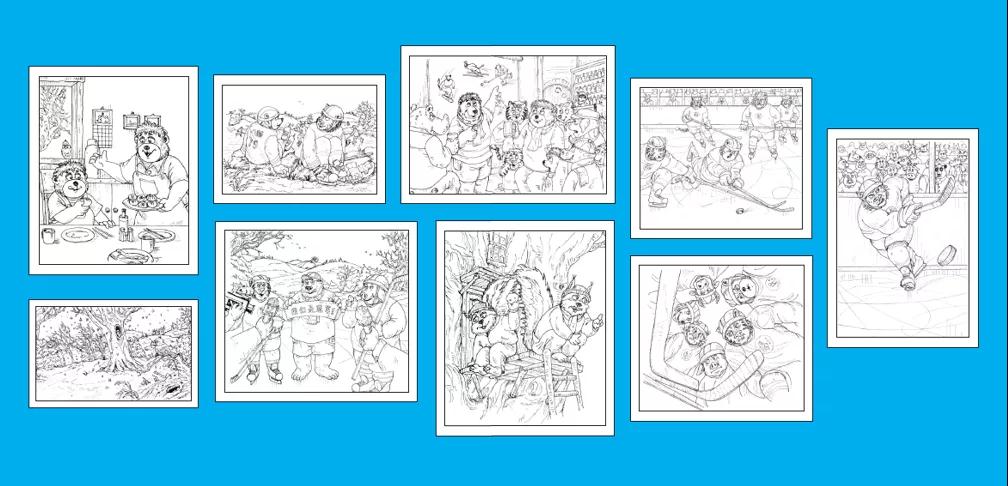 在新书《熊镇的故事:冰球!冰球!》中,作者以幽默诙谐的笔调讲述熊父子八顿和弗雷迪以及熊镇的动物们一起学习打冰球,最终“草根儿逆袭”的励志故事。