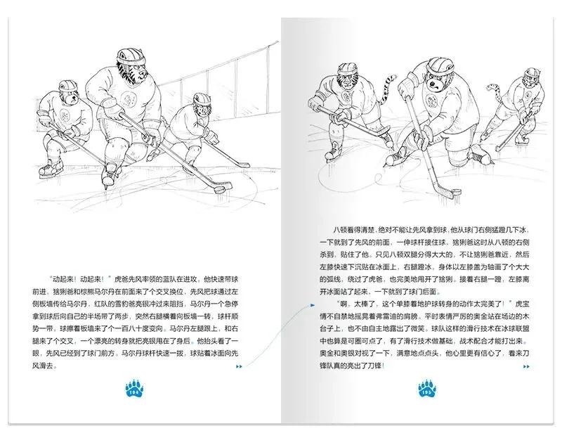 书中每一章节都有若干幅作者亲笔手绘的精美插画,把动物们的憨态与冰球运动的种种细节完美地结合起来,让冰球比赛的所有魅力瞬间定格在纸上。