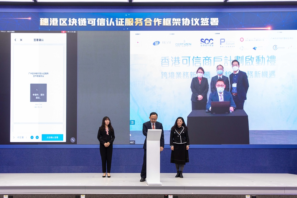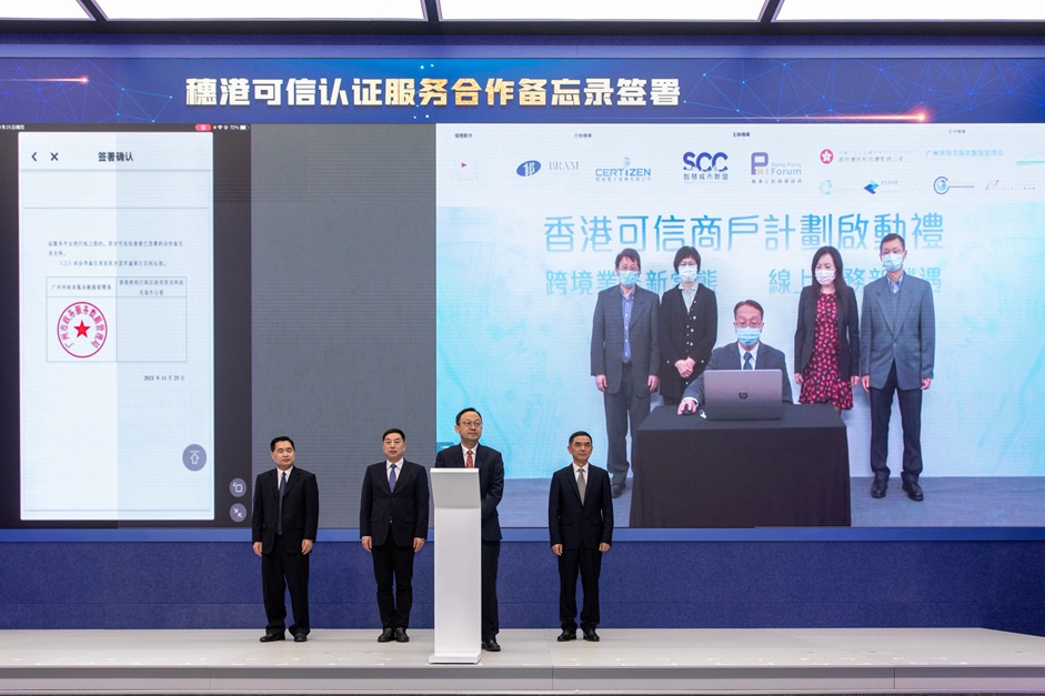 为推动穗港两地在更高层次、更广领域开展可信认证互通互认的深度合作,广州市政务服务数据管理局与香港特区政府资讯科技总监办公室在线签署《穗港可信认证服务合作备忘录》,这也是全国首份跨境区块链电子合约。