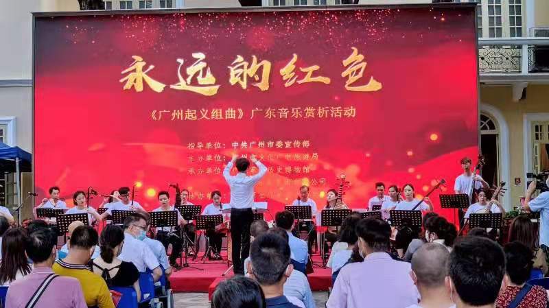 屈庆的学生,广州市音乐家协会副主席、广东音乐广州市级非遗传承人陈芳毅介绍,《广州起义组曲》为广东音乐合奏组曲,由五个部分组成,分别是:序曲——前引;《广州起义组曲之一》——起义之夜(前夕);《广州起义组曲之二》——起义;《广州起义组曲之三》——建设苏维埃;《广州起义组曲之四》——终曲。组曲的大体调式进行为C调—F调—G调—C调,其中组曲之二和三共同使用G调,“组曲充分表达出这次起义虽然失败了,但起义军民无比英勇的战斗精神,给了中国人民以新的鼓舞。起义的许多领导人和保留下来的武装力量,继续为中国革命事业而顽强战斗,成为中国人民解放军的重要组成部分和革命火种。”这部组曲自创作完成之后,从来没有公演过。在庆祝中国共产党成立100周年之际正式公演,并且把首演放在起义指挥部旧址中,令人感慨万千。