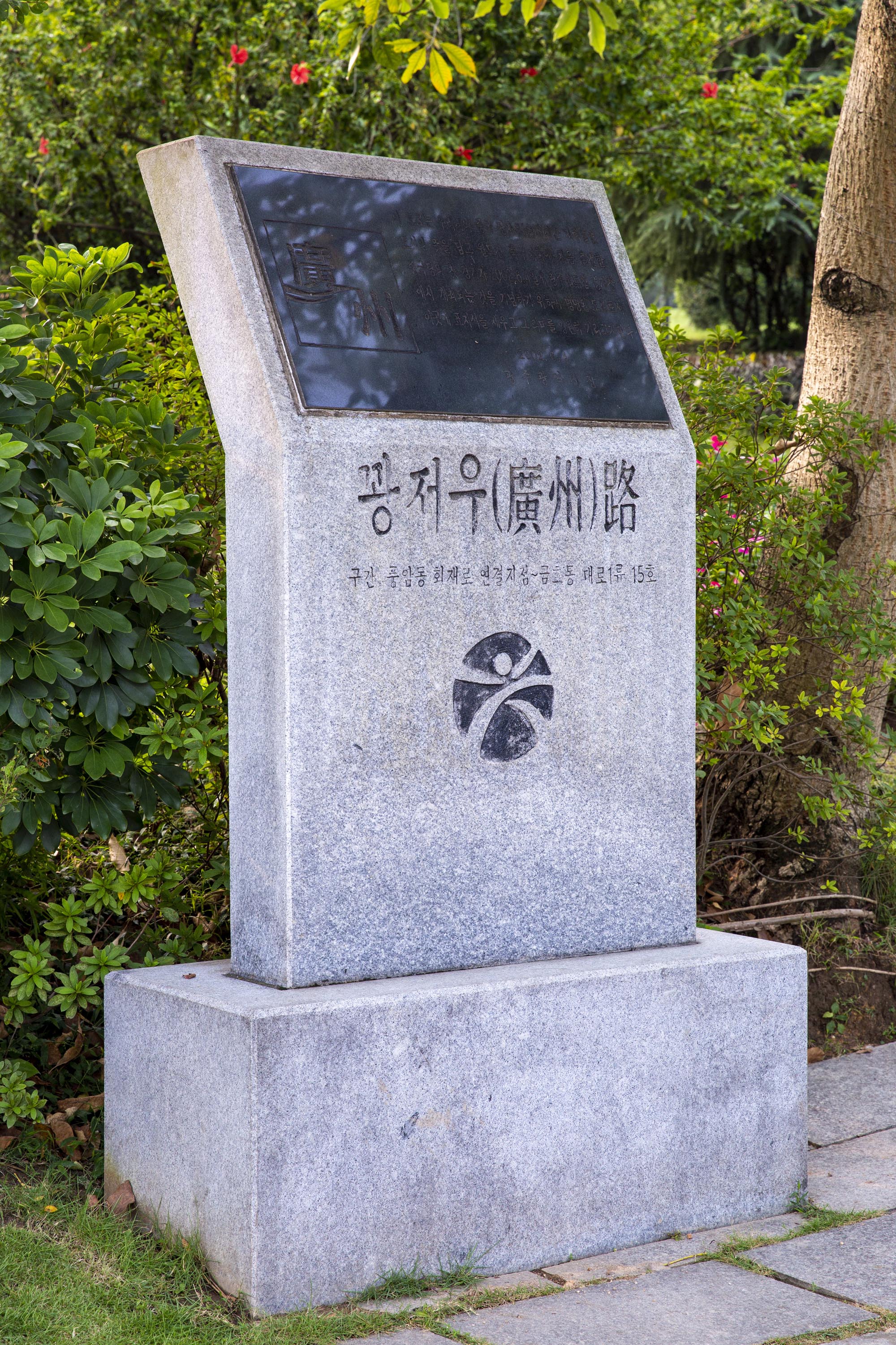2002年6月,中国国家足球队首次征战世界杯,首场比赛在韩国光州市体育场进行。为纪念这一盛事,光州市政府将体育场前的一条路命名为“广州路”。现存于广州云台花园的这座路牌是光州市“广州路”路牌的复制品。