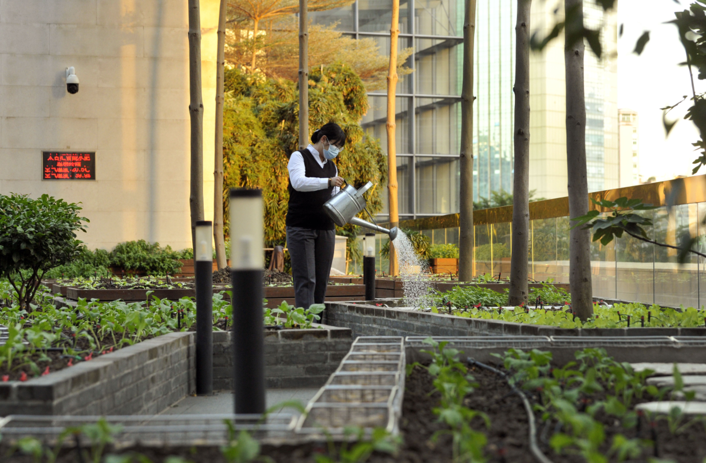 太古汇屋顶菜园:可种植六七十种蔬果 附近的鸟儿常常来“偷菜”