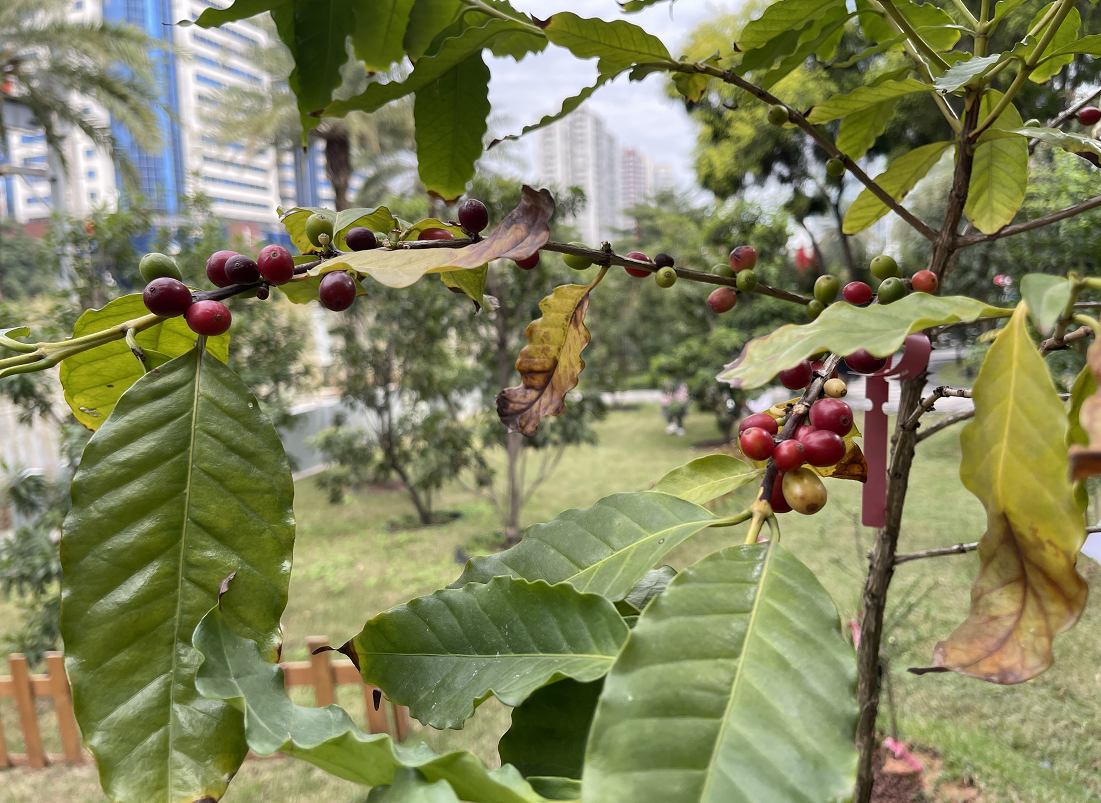 百果园里种植的咖啡豆。信息时报记者 马续丽 摄
