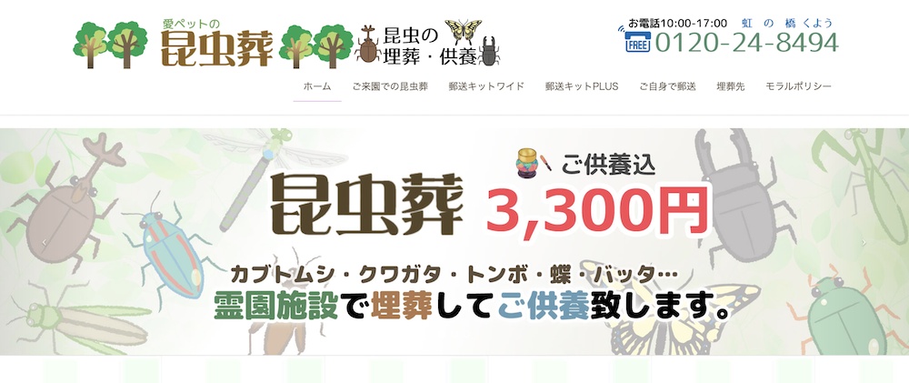 兵库县的爱宠集团提供的“昆虫葬”服务。“小動物の葬儀”官网 图