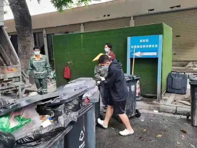 本次活动设置了“环卫工作体验”和“摊位游戏宣传”两个环节。在“环卫工作体验”环节中,青年志愿者在环卫工人的指导下,分别体验了垃圾装车、收大件垃圾、楼层清洁、路面清洁等岗位。