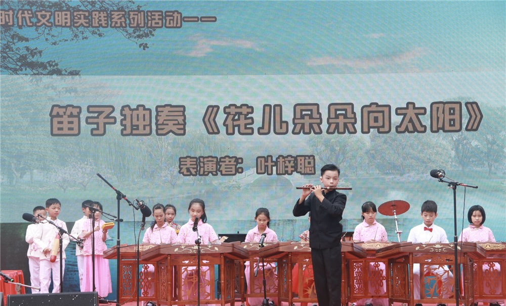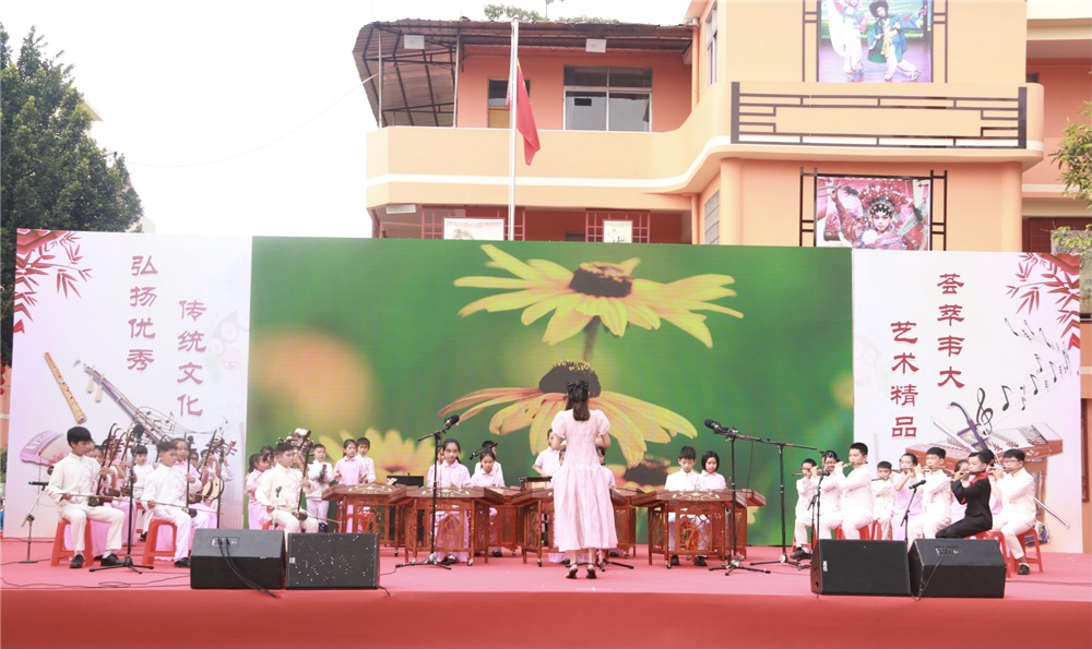此次活动由韦大小学韦弦民乐社的学生进行展演,精选广东音乐《步步高》《醉月》《平湖秋月》等传统经典曲目,曲韵清新婉转、悠扬动听,尽显广东音乐轻、柔、华、细、浓的特点。