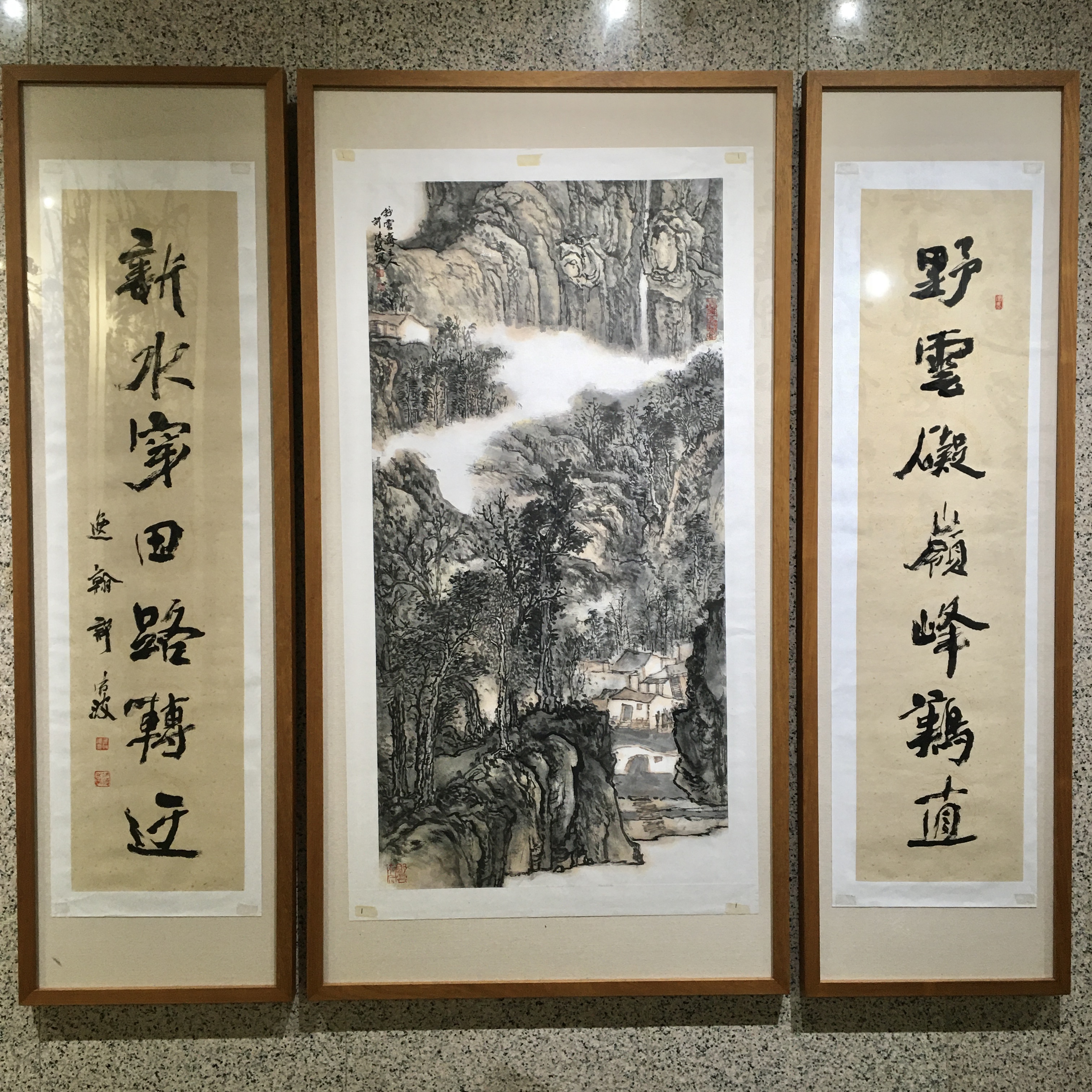 山水《静寂清凉图》;书法《盆草·岭梅联》