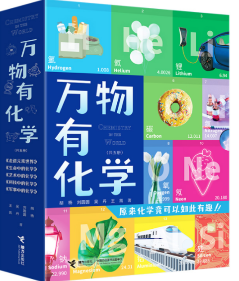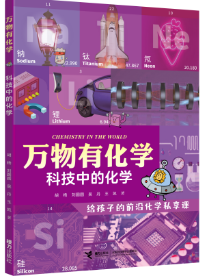 “万物有化学”系列丛书共计5种,分别是《走进元素世界》《生命中的化学》《艺术中的化学》《科技中的化学》《军事中的化学》。本套书从四大主题——生命、艺术、科技、军事,六大学科领域——化工、物理、生物、历史、艺术、军事,详细地给孩子解说了化学在基础知识、前沿科技等各个方面的应用和原理,是国内迄今为止首套从化学的视角揭秘万物的科普图书,读者人群为9—14岁少年儿童。